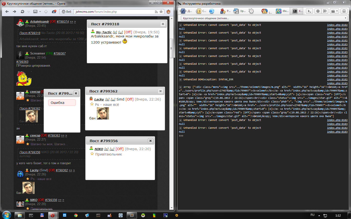 Щас попробовал запилить предосмотр поста из цитат через ajax. Вобщем вышло, правда работает через раз (см. скрин).