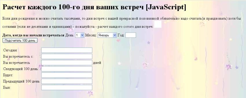 Умельцы сайта если есть свободное время не могл бы черкануть такой сервис!? пример на фото! Расчет каждого 100-го дня ваших встреч