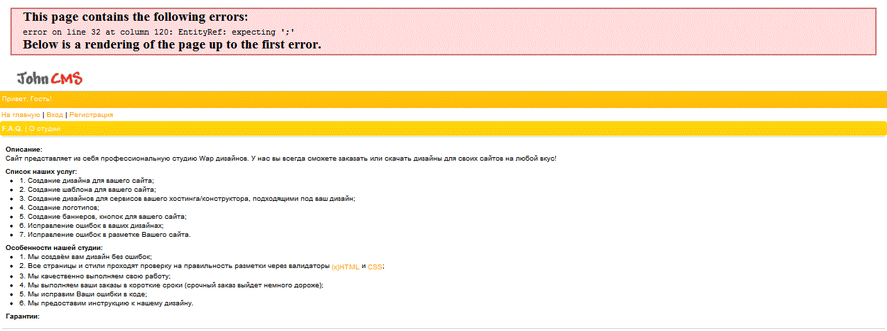 kamkabek_95 (04.03.2012/16:52)Во-первых, не стоит злоупотреблять капсом, все всё прекрасно видят. А во-вторых, не в ту тему пишешь. Здесь не исправляют ошибки скриптов, грабов и пр., здесь помогают с хмл ошибками на сайте, в т.ч. с ошибками, найденными валидатором.
