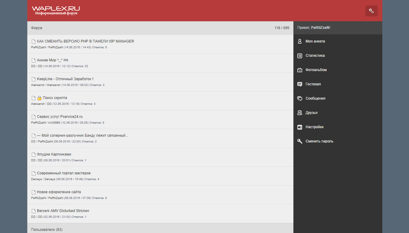 # PaRtiZzaN (16.06.2016 / 23:31)Как сменить версию пхп в ИСП Менеджере?