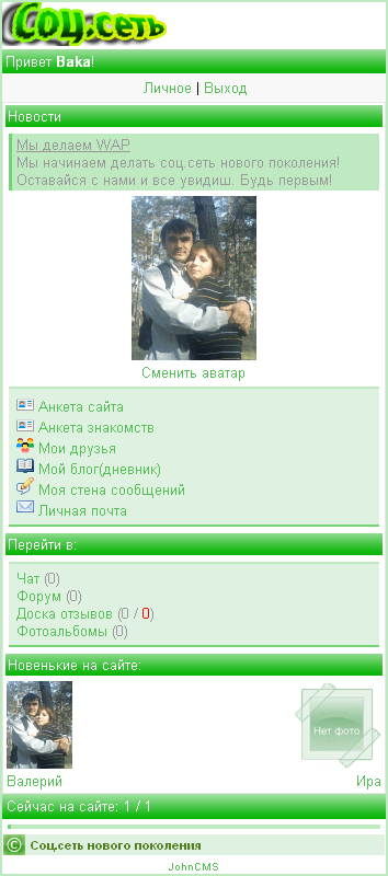При написании знакомств под джона, как свои мысли были так и со стороны поступали сделать с джона социальную сеть. Так вот решил я этим немного заняться, сначала не хотел говорить до полного написания в плоть до теста, а потом решил. Одна голова хорошо, но несколько лучше. итак пока только в скринах все. На скрине видно практически все модули которые будут задействованы, и те которые уже есть.(Более всего еще буду дописывать что то новое туда.) прошу прокомментировать это, все за и против. Жду ваших отзывов и подсказок по функционалу. Скрипт возможно будет на продажи а может и нет!
