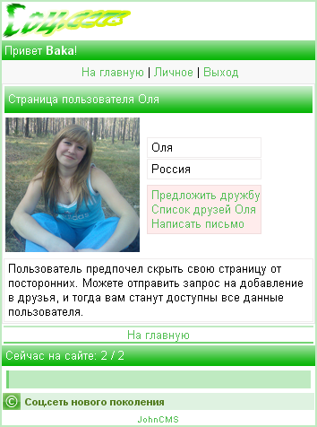 Социальная сеть с JohnCMS