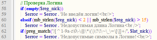 $error[] = 'Недопустимые символы в Нике<br/>';Taltos, мне редактор почему то \0 жирным выделил вот я и решил сначала спросить ![]()