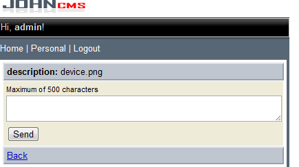 <small>Maximum of 500 characters</small><br /><textarea name="opis">' . htmlentities($res_down['about'], ENT_QUOTES, 'UTF-8') . '</textarea>';