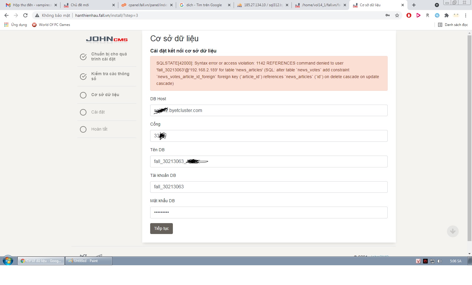 tamhoangdk, The database user does not have sufficient rights.