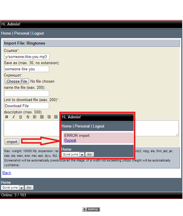 JherMan, Syntax error. Advertisement hosting. Johncms