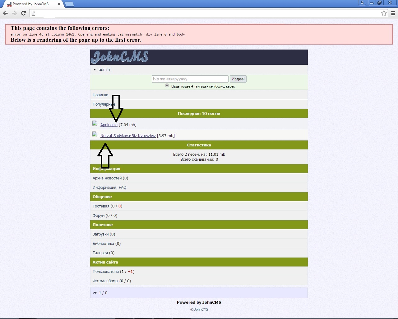 fanatos, еще когда захожу на ссылку 10 последних песен выкидывает на johncms на локалке делаю
