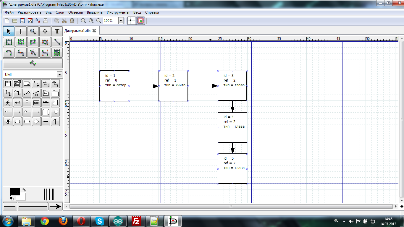 Имеется автор, у автора книги а книги разбиты на главы!