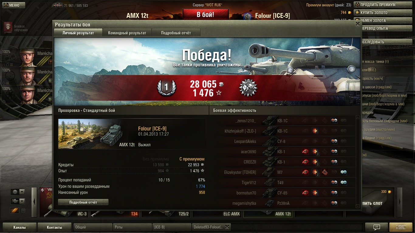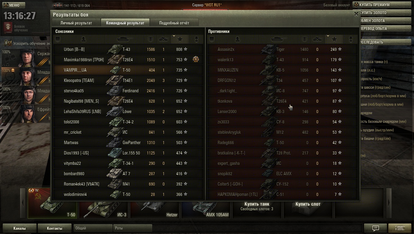 Все хвастаются, дай и я похвастаюсь. Стовой артой против 4х выстоял :-D еще и экипаж умеет 56 процентов. Блин детишки появляйтесь чаще за красных. Хватит за зеленых играть.