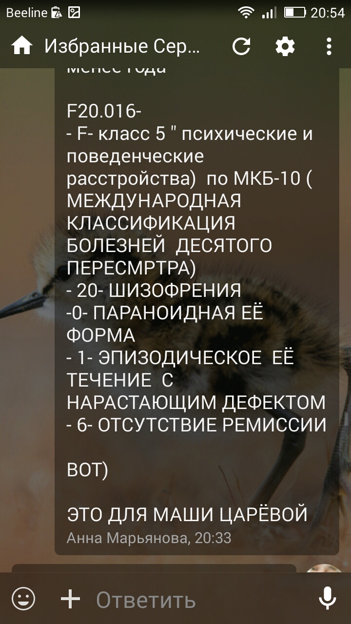 Мне расшифровали в шифре кода моево диагноза по мкб10 последнюю цифру 6 чем это оказалось для меня шоком просто Через сколько интересно лет я начну осознавать что я это не я и вообще через сколько лет я начну себя саму не осознавать вообще что я это я что я вообще человек а ни существо сущность или молекула