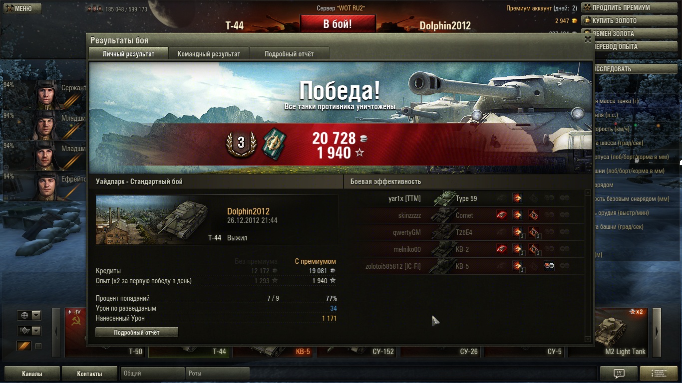 Первый бой на Т-44, неплохая машинка