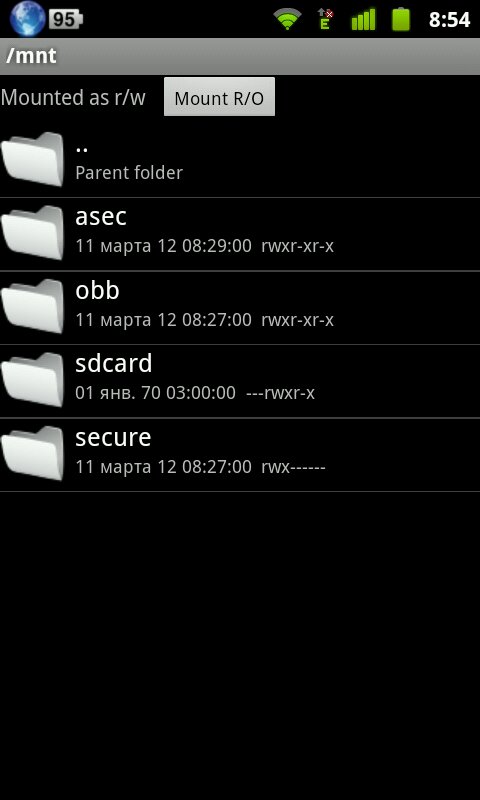 SDcard это та часть которая в fat32, а еде есть раздел в ext3 на который проги переносятся на карту (asec), так что наличие mnt в адресе это нормально