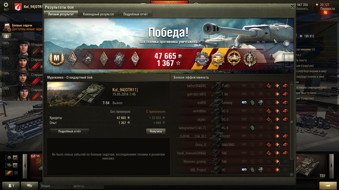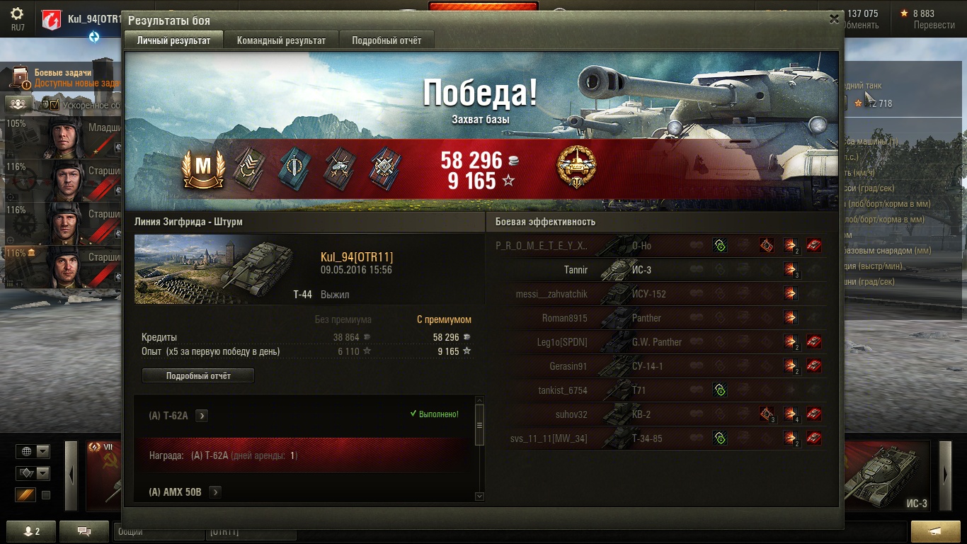 а это следующий бой. За 2 боя подряд 13к опыта, 5500 дамага и почти +100к фарма ![]()