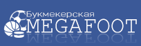 Надпись: Букмекерская «MEGAFOOT» и добавить пару спортивных атрибутов: Футбольный мячи