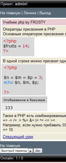 урок 1 (рабочий) ссылка: site.ru/phpbook/lessons12.php