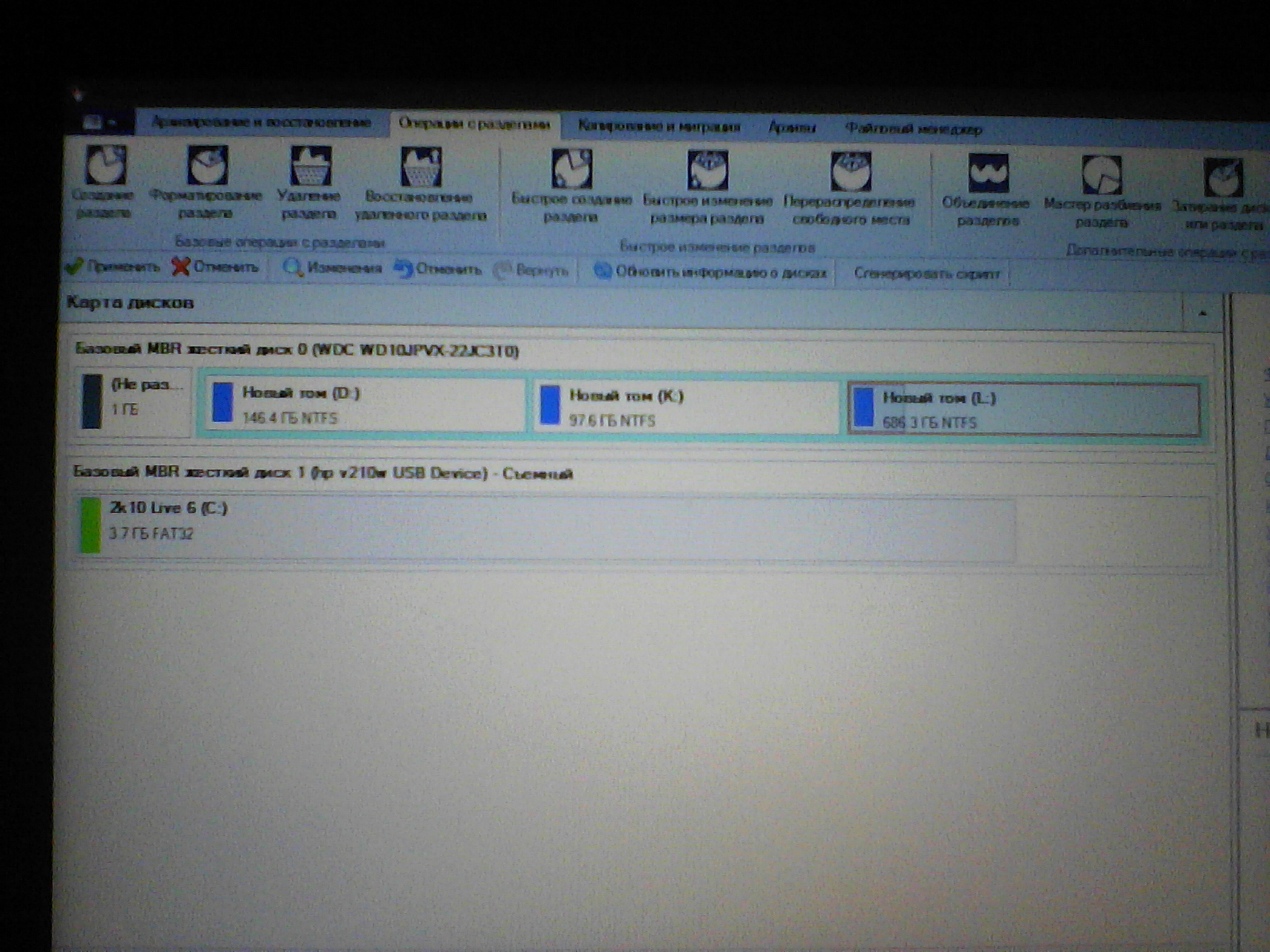 Креплю разбивку ещё раз. Скажите какие разделы удалить и как потом поделить их? А то я уже нифига понять не могу