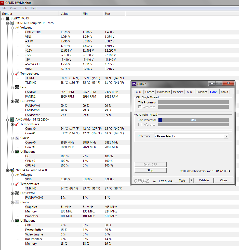 Kip-OK, пока не запускай, запусти бенч (cpu-z), и в хвмониторе глянь что по температурам