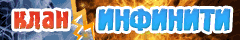 Слово клан на ледяном фоне, слово ИНФИНИТИ на фоне огня. И что б эти два фона разделяла молния
