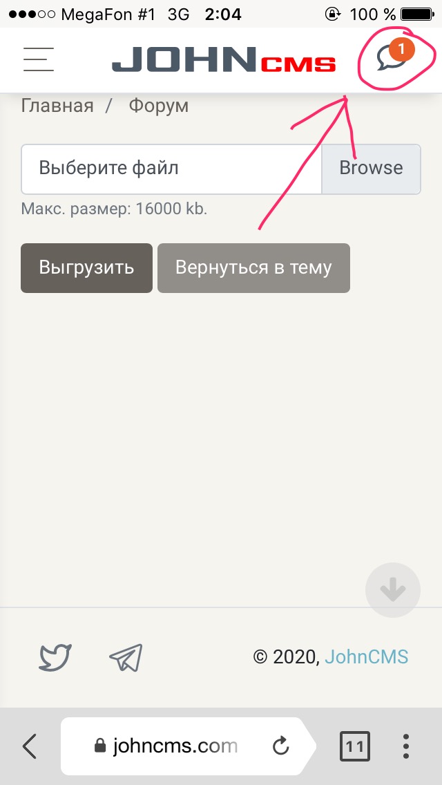 Simba, Когда открывается страница выгрузки файла в форуме, то счетчик уведомлений увеличивается на один