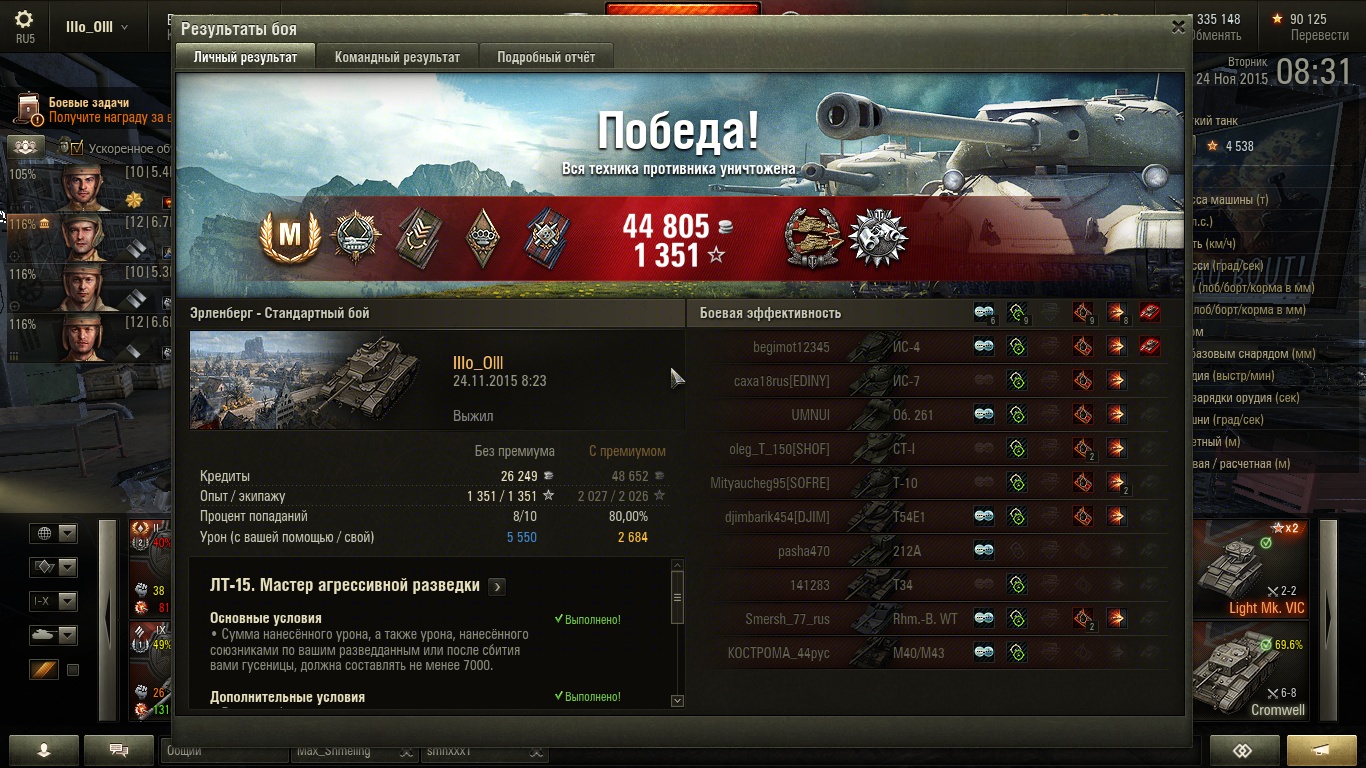 Собирался уже спать идти... кидает в бою в самую жопу списка, к 8. Итог боя конечно веселый был) сразу в танчик влюбился, хотя всего 11 бой был)