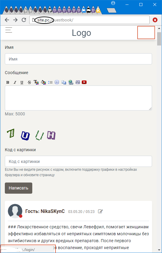 на локальном сервере (Open-server) в адресной строке после адреса, перед слешем ставлю просто току (см. скрин);