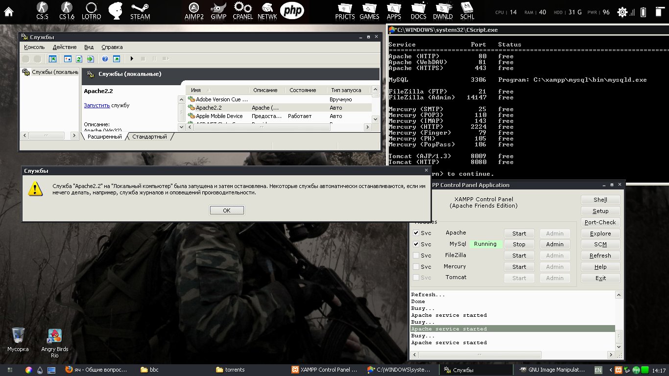 сегодня ночью поставил торрент и включил автовыключение после загрузки. теперь апач запустить не могу![]()