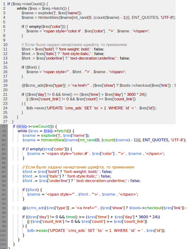 Один и тот же код для сравнения, вопрос какой читабельней, правый или левый?))