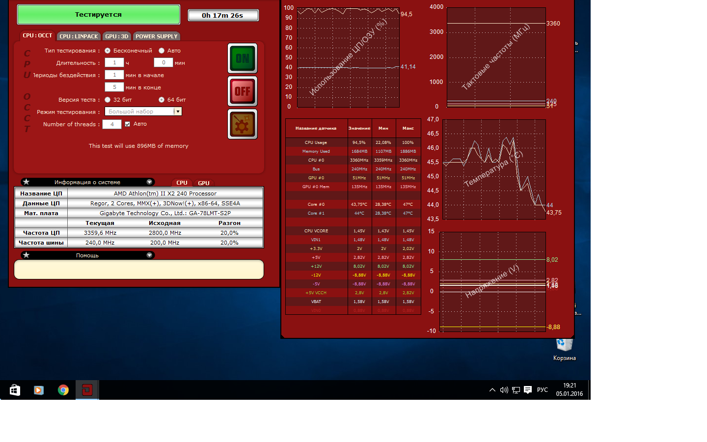 Ru, да это. норм 12в. может софт не верно читает датчик. после окончания теста все так же 8в в винде? нашёл где поменять на 260?