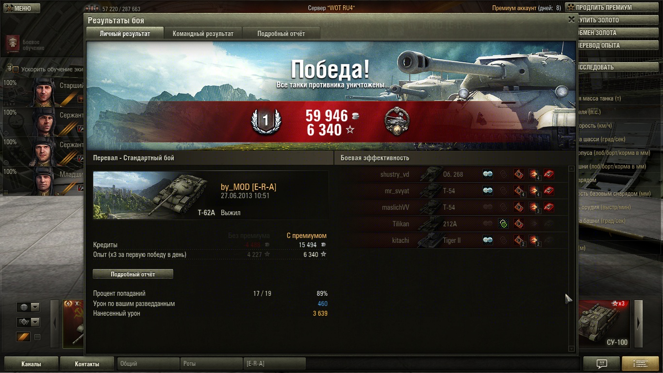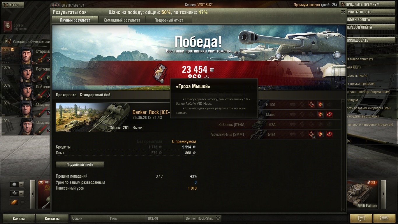 Во, нашел старенький результат своего боя, эх))) Щас бы за такое сто кусков кредитов дали)) 10 фрагов кстати))