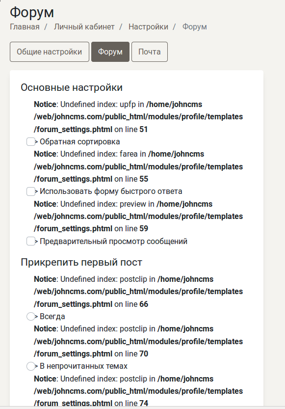 Simba, В профиле настройки форума сами по умолчанию не устанавливаются