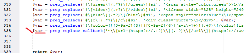 $var = str_replace(array(':'), array($uniq), preg_replace("#\[img\](.*)\[\/img\]#is", '<a href="' . $home . '/pages/resize.php?image=$1&amp;origina