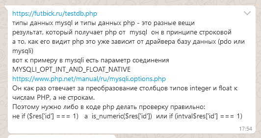 # Simba (15.10.2020 / 15:36)Написал я хостеру с просьбой разобраться в проблеме. Повторю, что mysqlnd у меня включен в настройках. Объяснил проблему, сказал что возвращается не тот тип переменной и к