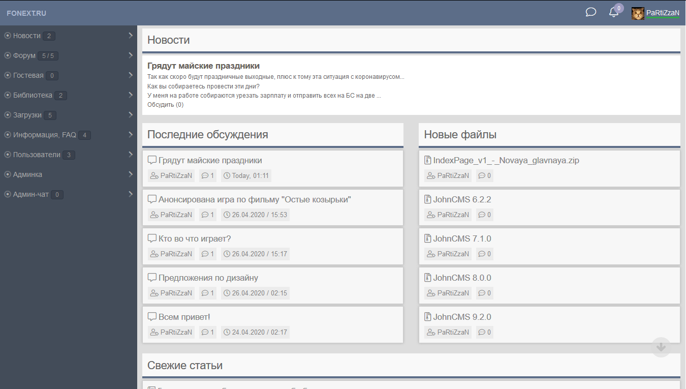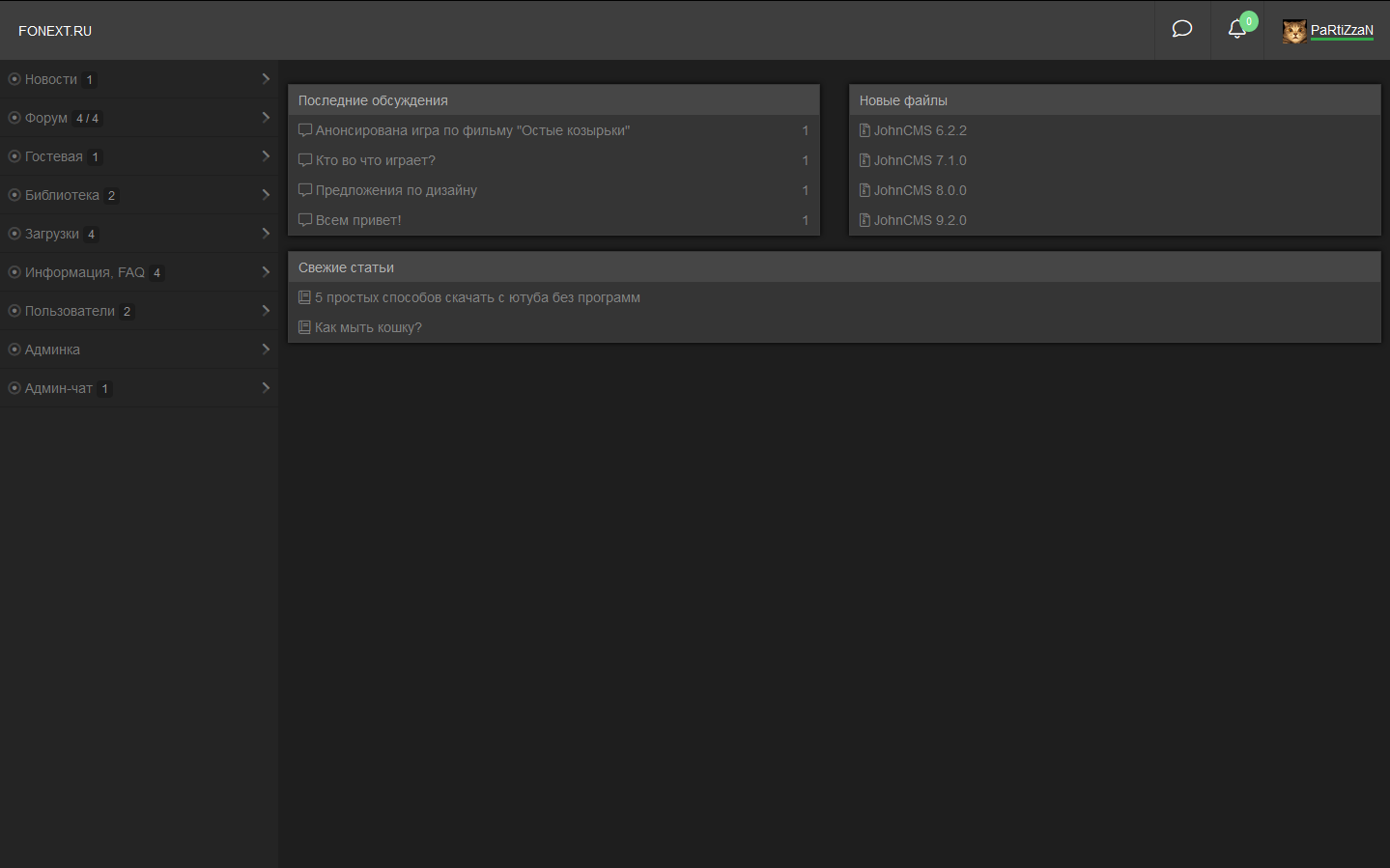 Темная тема для JohnCMS