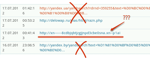 elkol (13.07.2012/19:30)Вот обнаружил рефера с того сайта. На том сайте нет никаких ссылок на мой, и быть не может, но тем не менее он каким-то образом попал в последние ссылающиеся ресурсы на мой сайт. Реферер с того сайта, как такое может быть? Может какой-то запрос идет или что это?