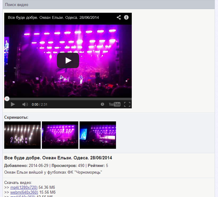 А вот так выглядит страница с видео.