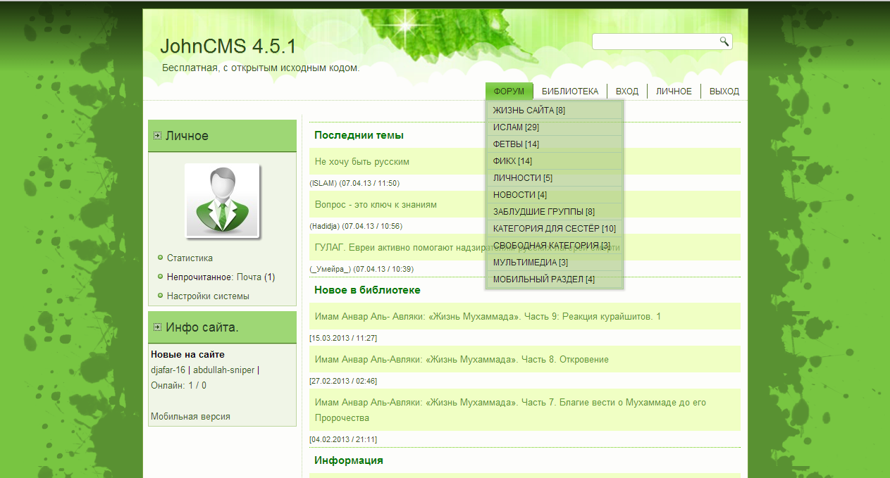 P.S. На выходных свой мод залью пере писаный полностью для JohnCMS 4.5.1...