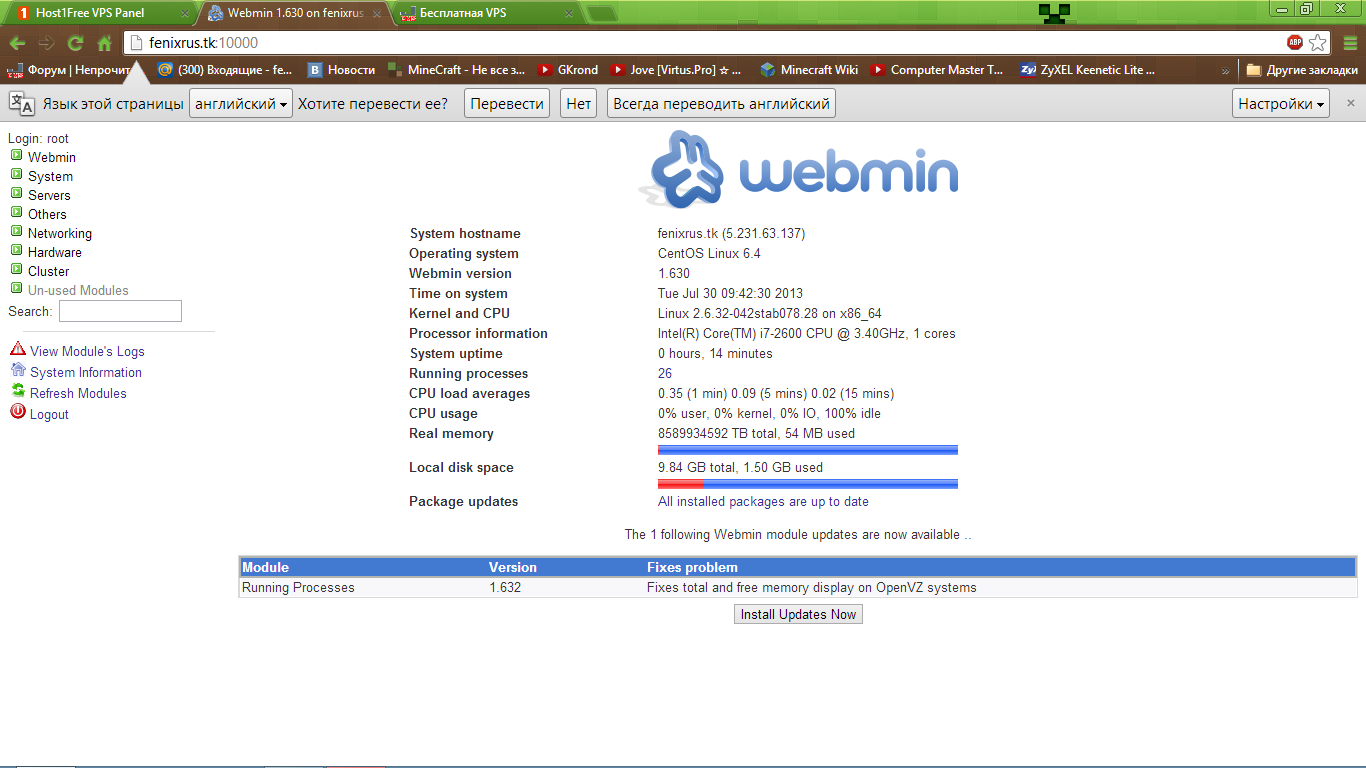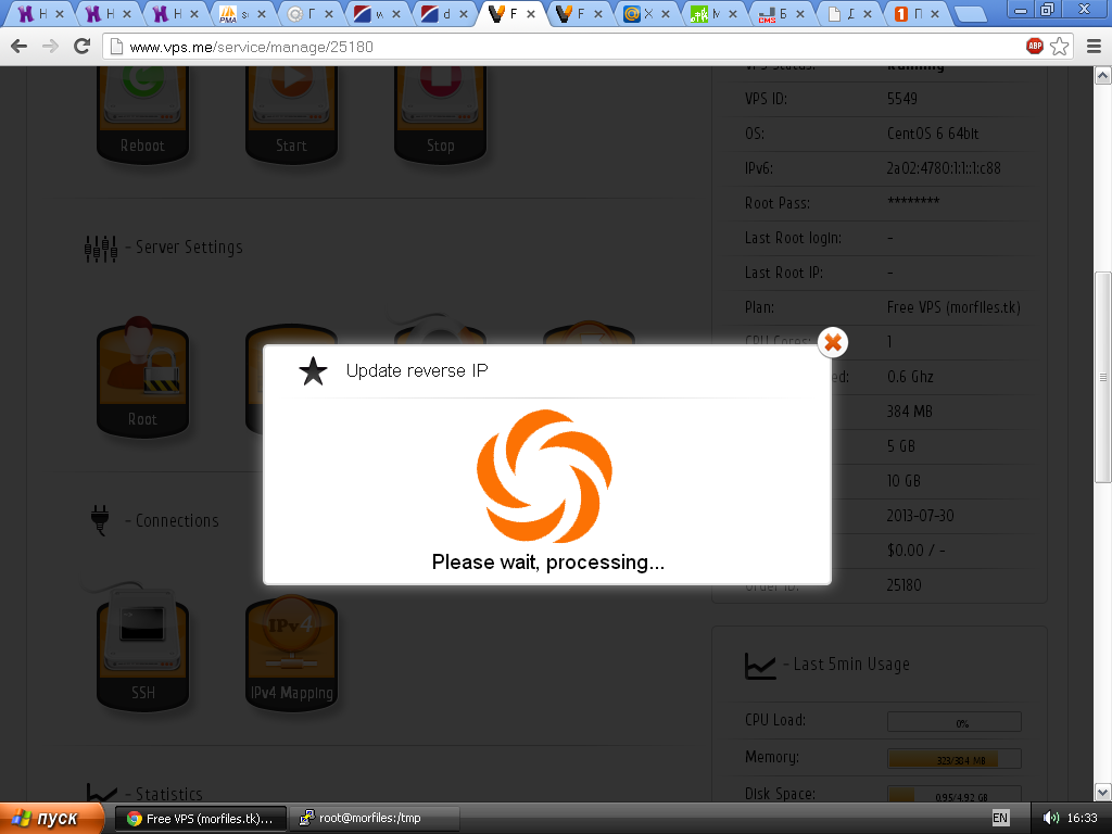 # venom (07.08.2013 / 16:43)Сейчас включены: nginx, apache, ftp, cron + панель vesta