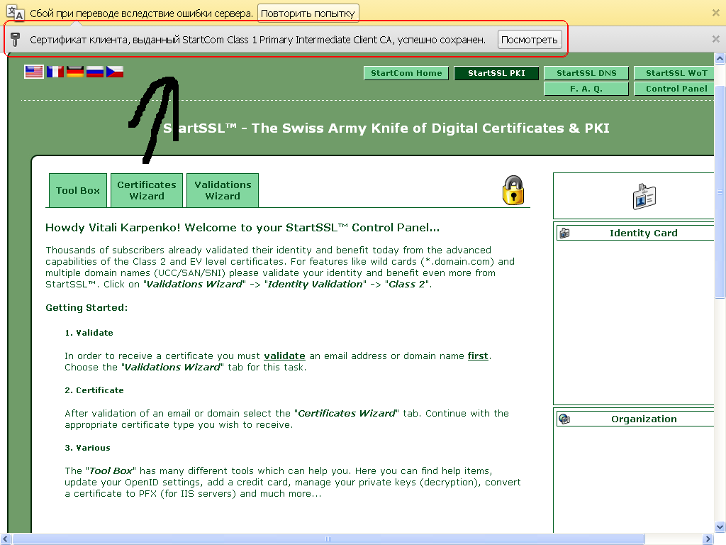 я решил себе зарегать бесплатный ssl сертификат от startssl.com - зарегал мне в арбузе написало что сертификат клиента выданый кемто там сохранен подробно на скрине я нажал просмотреть и потом в итоге у меня в конце появился файл с разширением .pfx что дальше делать?