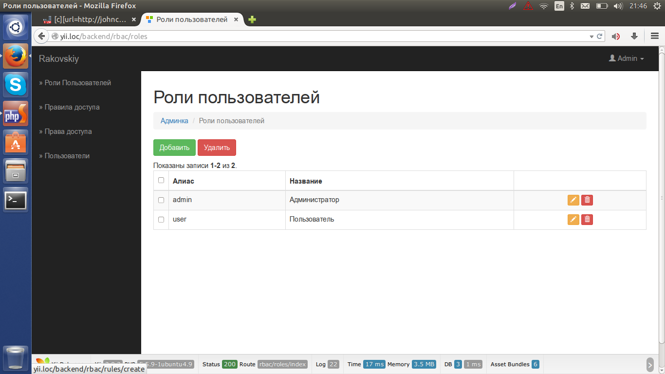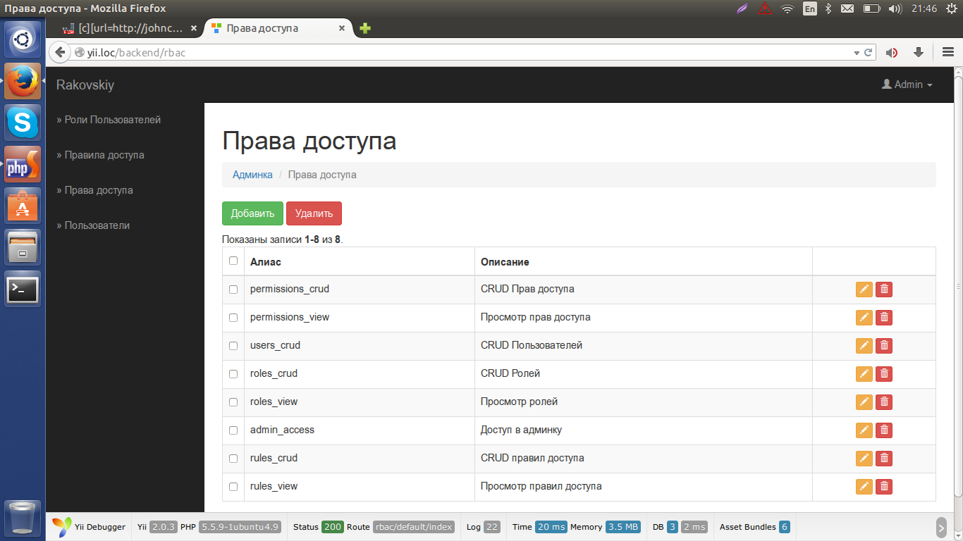 Базовый набор модулей - пользователи, права доступа, роли (группы) пользователей и правила доступа. Пока же стоит задача привести код в красоту и написать фронтенд. Это же вход, регистрация, восстановление пароля и личные настройки пользователя.