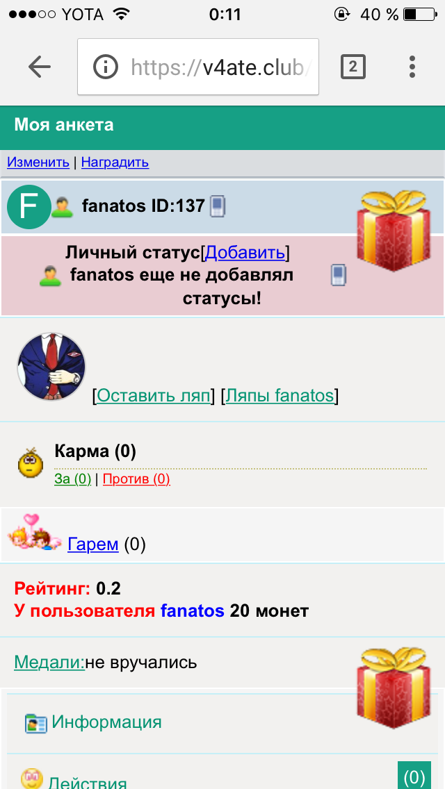 Зачем в своей анкете два подарка себе?)