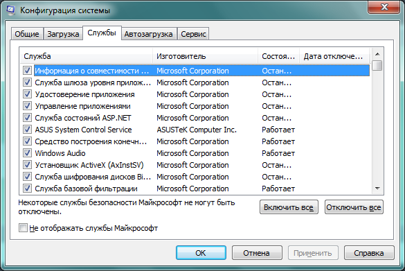 кнопка windows + r -> msconfig - > службы