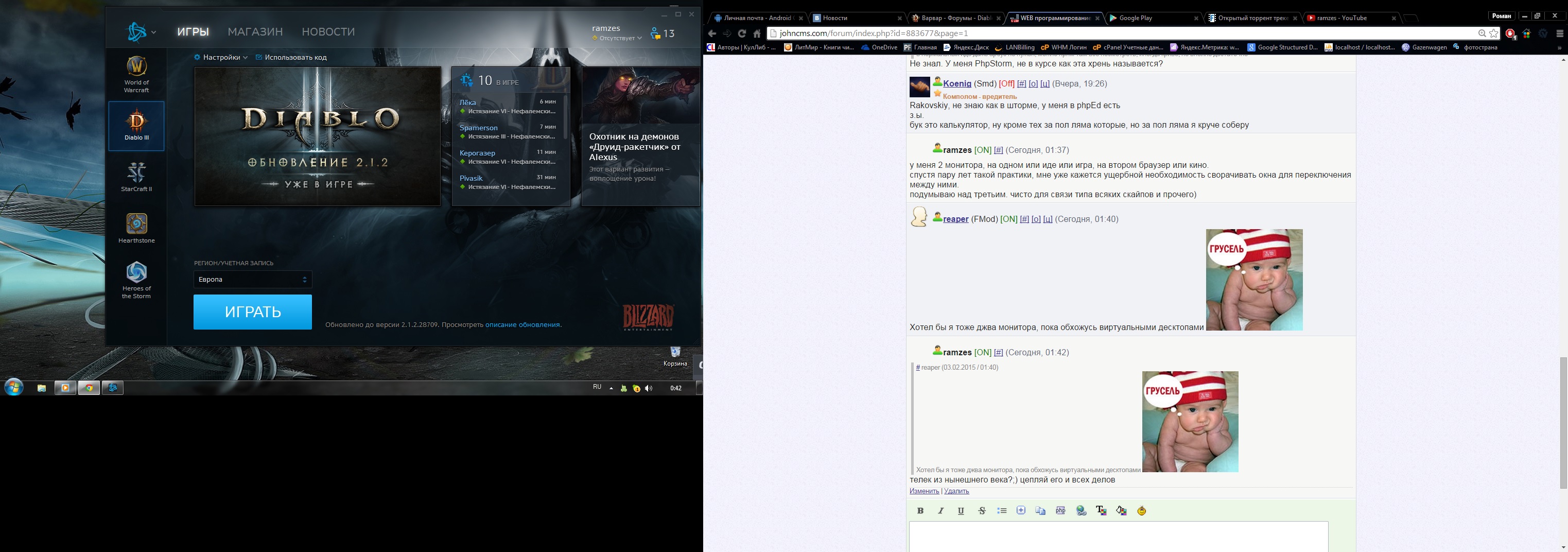 слева монитор 19", справа телевизор 37"