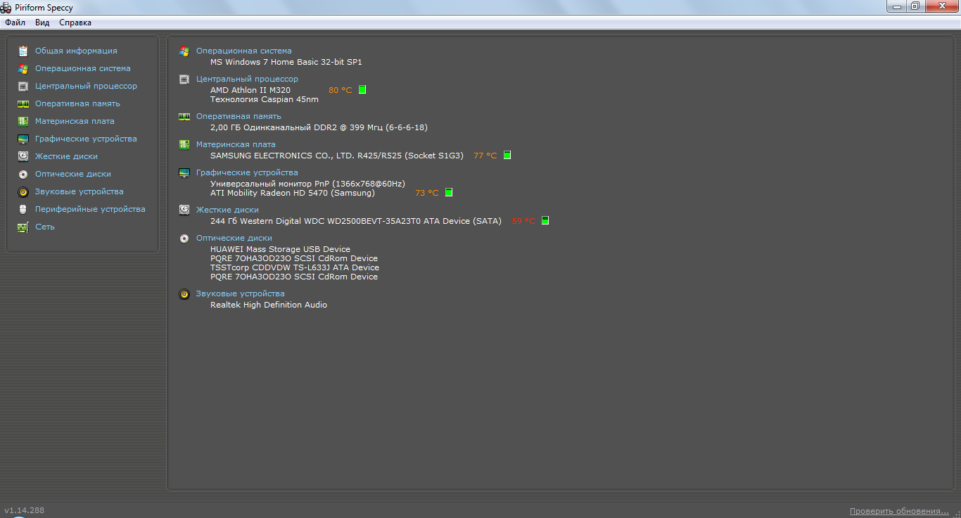 а вот характеристики моего какокомпа ...