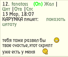 kapynka (14.03.2012/11:45)Согласен. Развод= получение скрипта нечесным путем.Значит кидала,в чем он сам тут и признался!