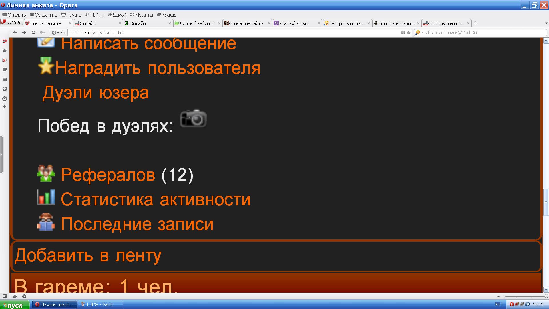 а вот тут в анкете не выводит колличество побед в дуэлях