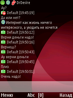 Вот такое дело, поступило мне сообщения в лич от некого DrDesire мол граберы скрипты продаю, связались мы с ним по асе, договорились за скрипт Знакомства за 100 рублей, он говорит аванс вперед, я говорю даю 30 рублей, остальные как пример даш, он сказал окей, и на следуючий день я его словил в асе, он говорит мол винда политела то и се, деньги потом отдам, и дальше я его не видел, сегодня пишу ему в приват когда ж на конец скрипт зделает, он молчит, и кричу ему зделай, мол так и сяк, он молчит, я пишу на форуме напишу что барыжеш, тут сразу бах он меня в игнор пустил, и говорит дениги потом отдам