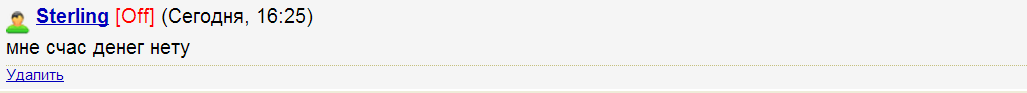 Уважаемые форумчане. Создаю эту тему для того, чтобы раскрыть еще одного не совестного человека - Sterling. Короче написал он мне вчера нету ли у меня скрипта, указав ссылку на какой-то восточный сайт с футбольными новостями. Я ему ответил что могу сграбить этот сайт(тоесть эти новости), он согласился. Договорились за 50руб. Сделав этот грабб дал ему пример и попросил оплатить работу, как и договаривались. Но здесь он сказал что ему нужен скрипт, а не грабб