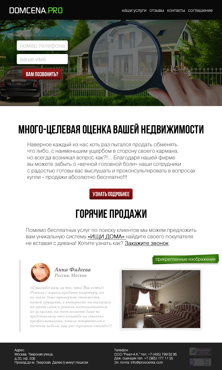 Лендинг для сайта оценки/продажи недвижимости....