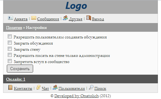 Скриншот 3: Настройка сообщества