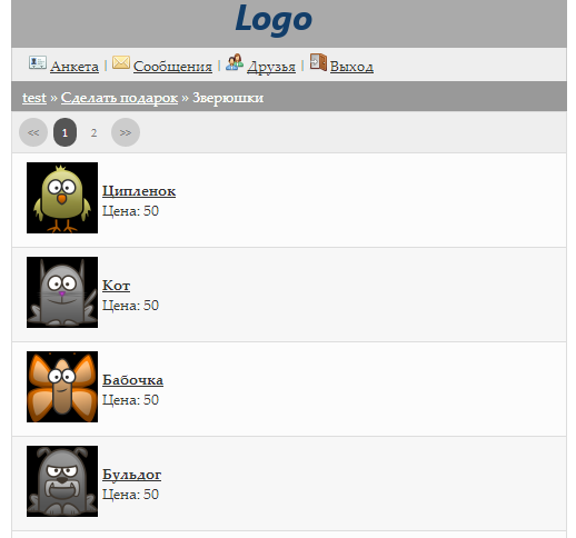 - Вывод подарков в анкете